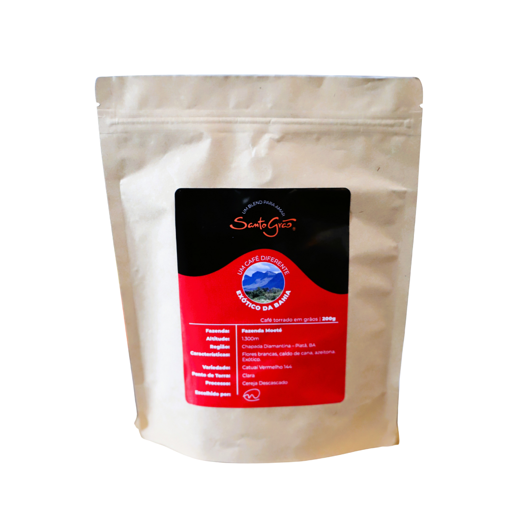 O café Catuaí Vermelho 144, cultivado em altitudes elevadas na Chapada Diamantina, é um híbrido de Mundo Novo e Caturra, ideal para manejo e colheita eficiente. Processado pelo método cereja descascado, oferece notas de flores brancas, caldo de cana e azeitona, com perfil surpreendente.
